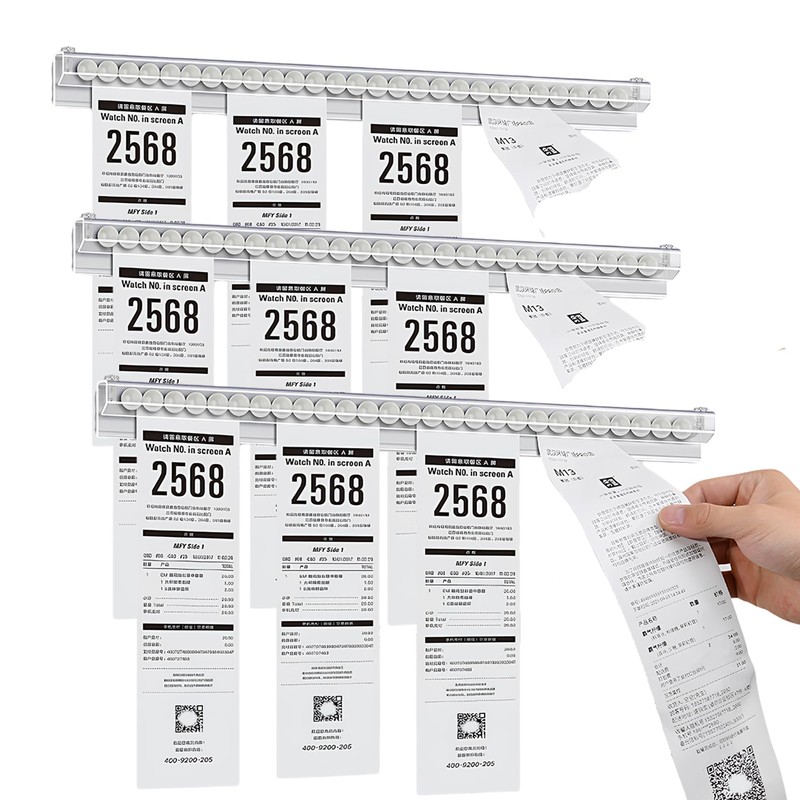 • With open-ended connectors, multiple order ticket holder clips can be connected and used together. The interfaces can also hold and slide papers. You can attach multiple order clips as needed.