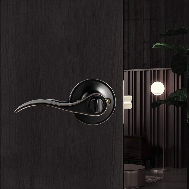 3 Pack Wave Lever Keyless Door Lock, Oil Rubbed Bronze Interior Door Handle Hardware Knob, Wave Handle Lever, Reversible for Left and Right Handed
