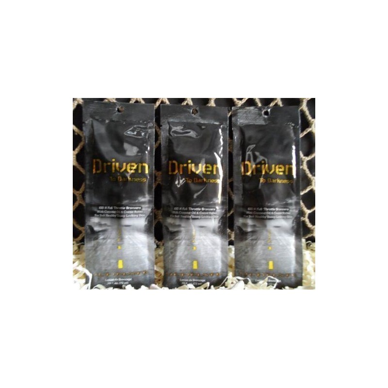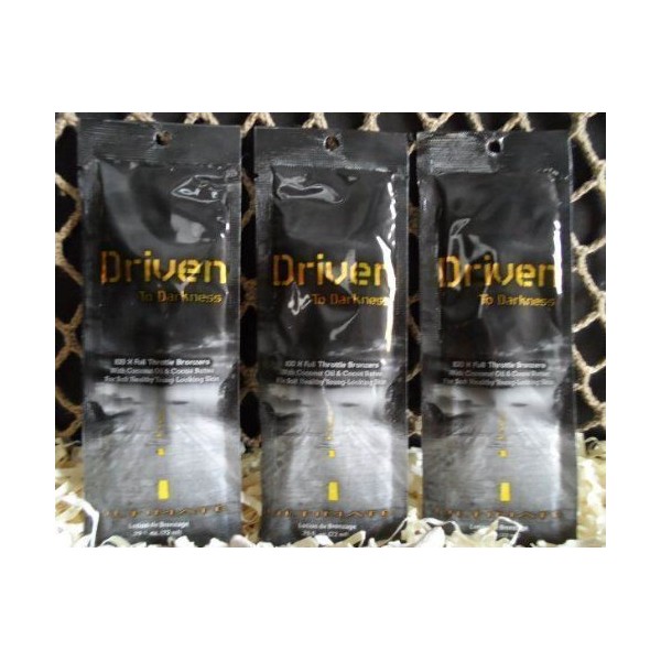 3 Packets Ultimate Driven To Darkness 100X Full Throttle Bronzers Tanning Lotion .75 oz.