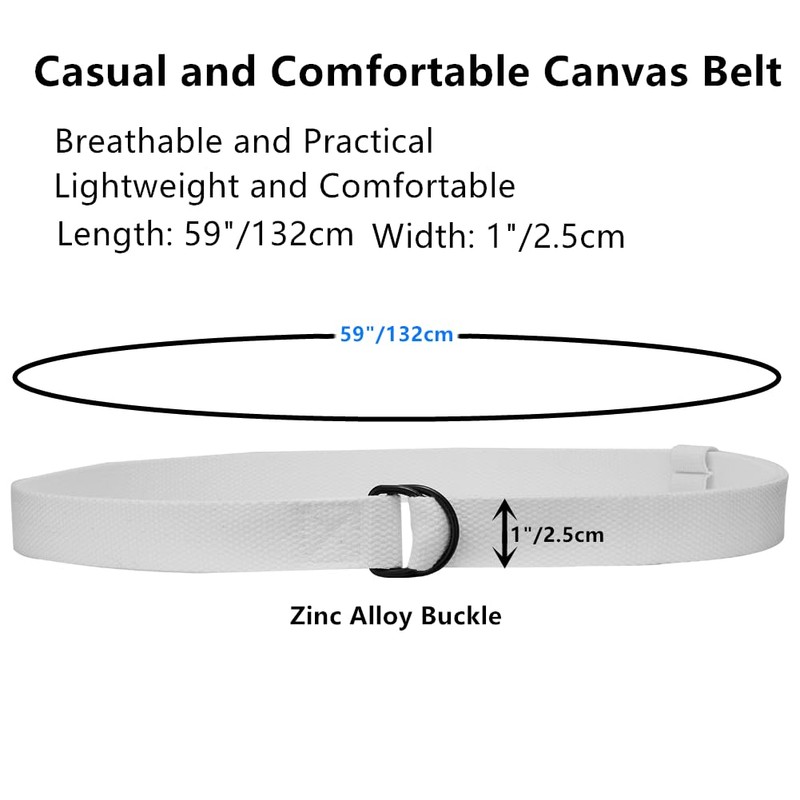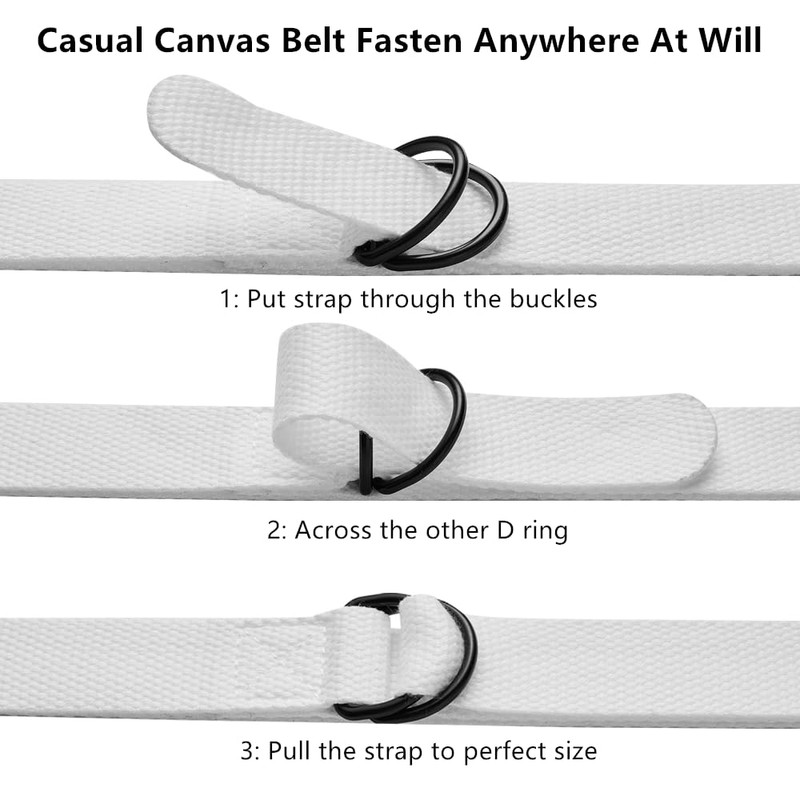 3-Packs Canvas Belt Web Fabric Casual Belt with Zinc Alloy Buckle Double D-ring for Men Women (White)