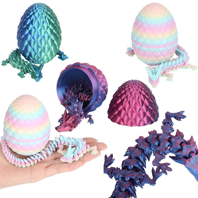 3 Packs Dragon Eggs with Dragon Inside, 3D Printed Dragon, Egg with Dragon Fidget Toy, Mystery Easter Basket Stuffers (Purple, Green & Rainbow)