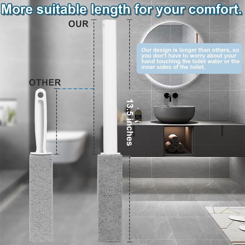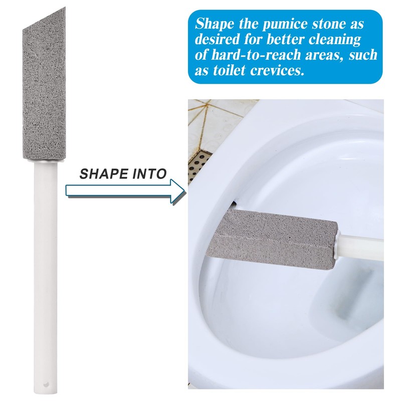 - Includes a 8.2-inch handle and three pumice stones, each measuring 5.3 x 1.5 x 1.5 inches. Effortlessly removes stubborn stains and hard water deposits —Deep bottom cleaning to keep hands clean!