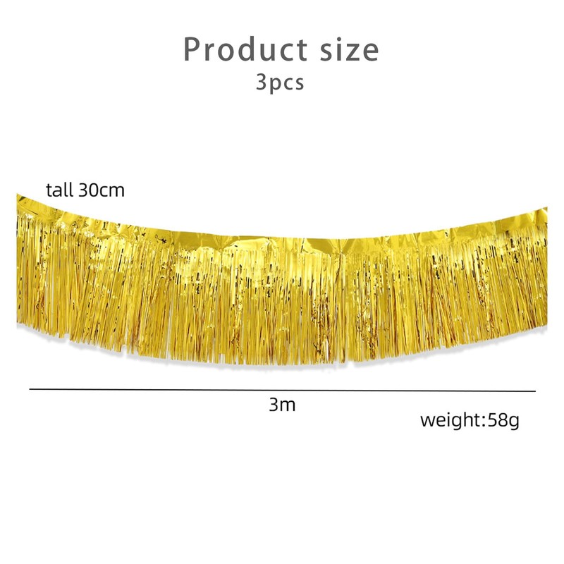 - Package includes: 3 packs metallic fringe garland shiny tassel banner, each garland is 3 m length and 30 cm width, enough to decorate your party