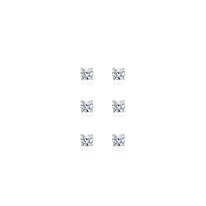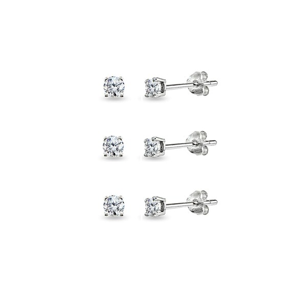 3-Pair Set Sterling Silver Cubic Zirconia 4mm Round Stud Earrings