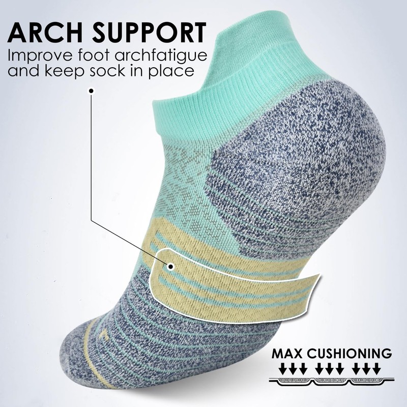 - Professional 200N Compression: Unlike typical trainer socks with 144 or 166 stitches, our no show socks are crafted using a 200-stitch technique. This higher stitch count results in ankle socks that are softer, finer, and more durable, offering superior foot protection even during the most intense workouts.