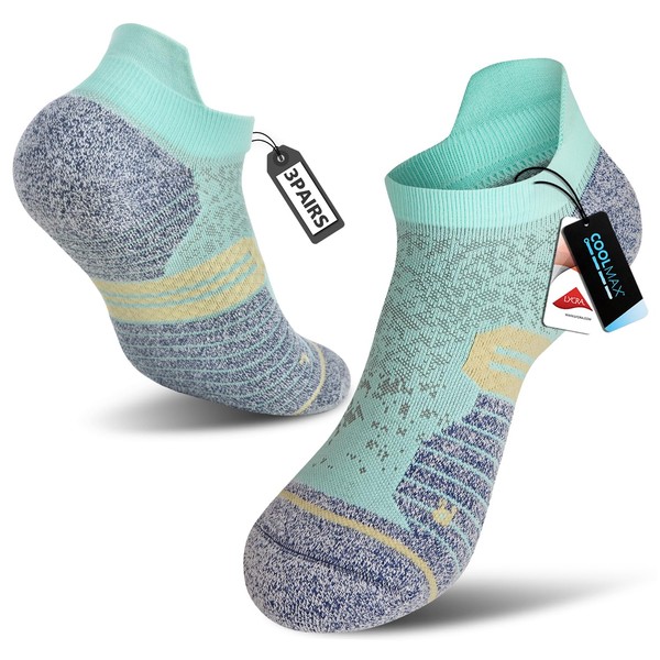 3 Pairs Ankle Compression Socks For Women Men Cushioned Running Trainer Socks Plantar Fasciitis Neuropathy Socks (US, Alpha, Small, Regular, Regular, Green)