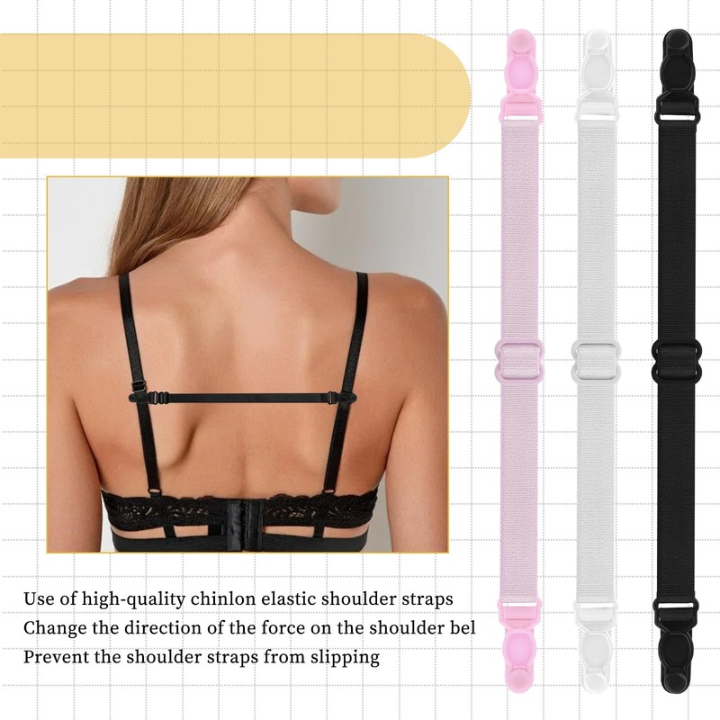 - 【Quantity and Size】: There are three pairs of bra holders, adjustable length: longest: 25 cm/9.84 inches, shortest: 17 cm/6.69 inches, width: 1 cm/0.4 inches, the size is suitable for most people, there are three colors to match most of your bras.