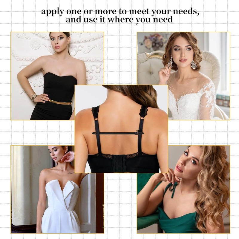 - Widely used: These bra shoulder strap holders are perfect for backless dresses, halterneck tops, tank tops, sportswear, bikini tops, etc. The bra strap clip is a perfect accessory for daily wear, sports, parties, etc.
