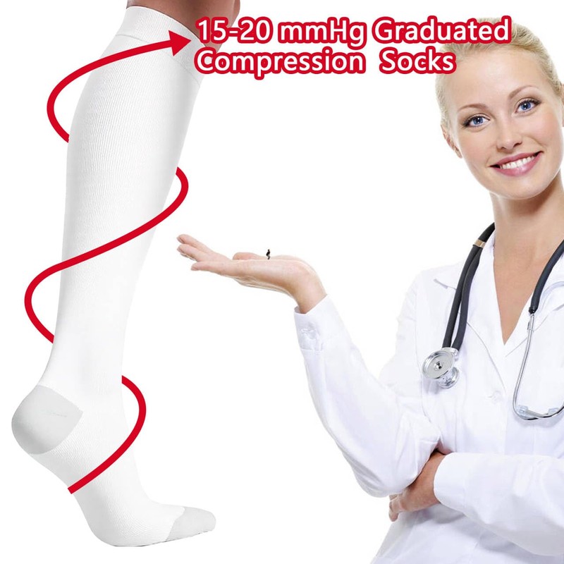 - ✅ 15-20 mmHg Graduated Compression – These grade compression socks deliver optimal pressure (15-20 mmHg) to improve blood circulation, helping to reduce swelling, fatigue, and muscle cramps during long flights, workouts, or extended work shifts. Perfect for nurses, runners, travelers, and athletes seeking enhanced performance and recovery.