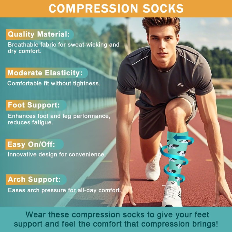 3 Pairs Compression Socks For Women & Men Flight Compression Socks Knee High Compression Stockings Circulation Best Support for Athletic Running Cycling Travel(Dog)