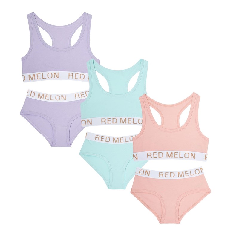 3 Pairs Girls 2 Piece Crop Top Brief Comfortable Sets Cotton Rich (Pastels, 13)
