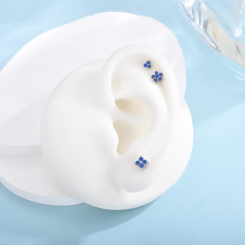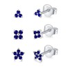 3 Pairs Sterling Silver Stud Earrings for Women Girls, Small Simulated Diamond Earring Sapphire Cubic Zirconia Flower Stud Earrings Hypoallergenic Sleeper Earrings Set for Multiple Pirercing, 3/4/5 mm