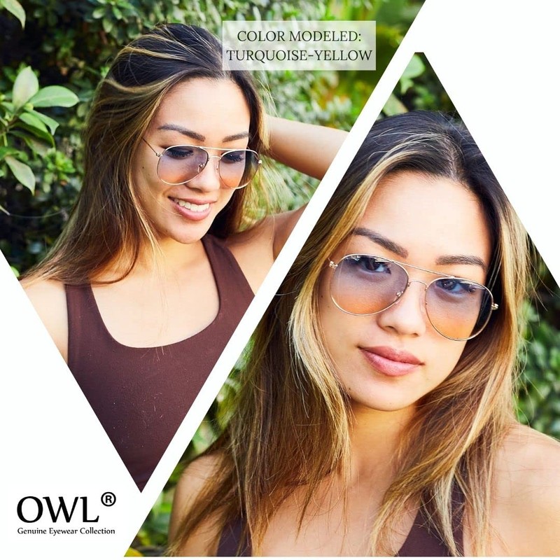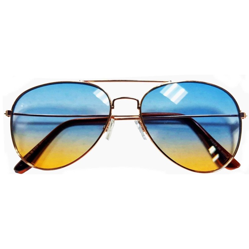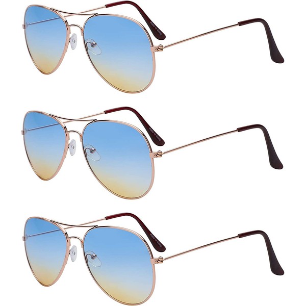 3 Pairs Wholesale Aviator Sunglasses 2 Tone Blue Yellow Lens Gold Metal Frame