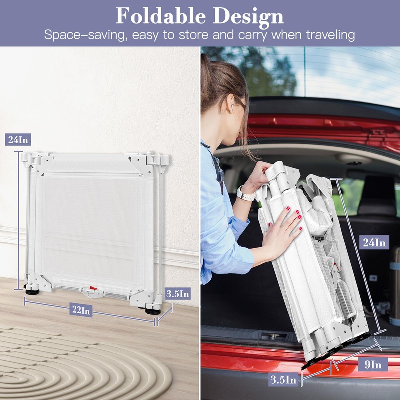 【Durable & Scratch-Resistant Mesh】Our collapsible dog gate is made of upgraded thickened mesh lining, more durable and scratch-resistant. Can withstand the scratching of pet's claws.