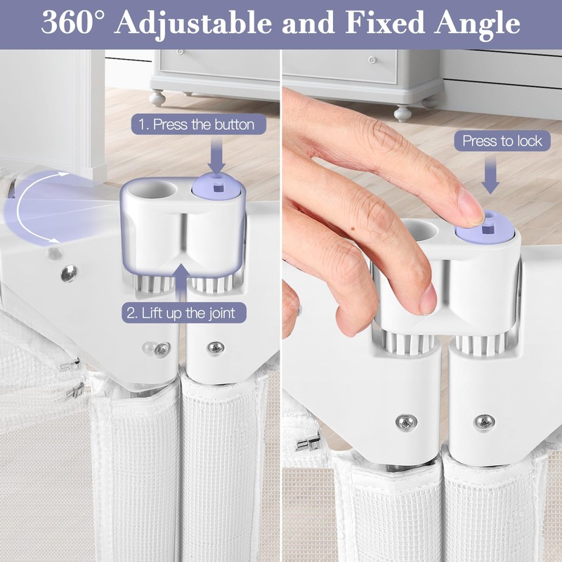 【Foldable & 360°Rotating Panel】The foldable dog gate is easy to set up and can be quickly unfolded like an accordion. The panel rotates 360 degrees and can be adjusted to various shapes according to your needs. Foldable pet door easily folds together for compact storage. Lightweight and portable, convenient to keep in a closet or take in the car when traveling.