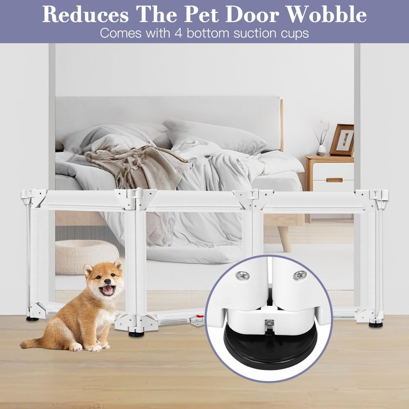 【Freestanding Pet Gate】The freestanding design requires no drilling and won't damage your walls. You can use it in doorways, hallways, kitchens, bedrooms, at the bottom of stairs or anywhere you want to keep your pet away. Comes with 4 bottom suction cups to increase the stability of the short pet gate and reduce wobbling.