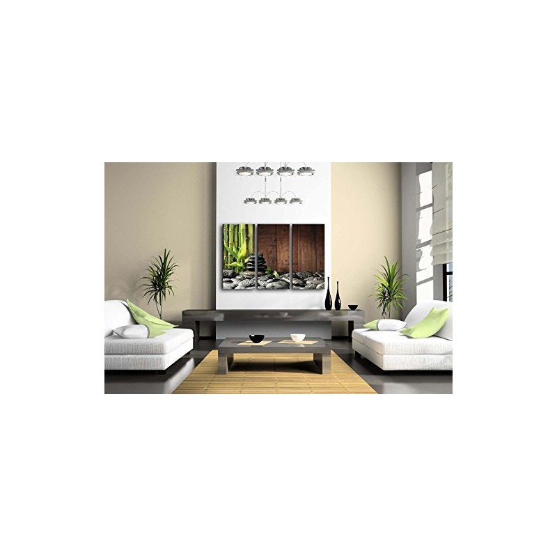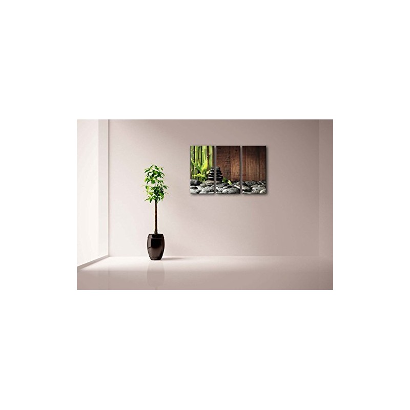 3 Panel Wall Art Green Spa Concept Bamboo Grove Black Zen Stones Old Wooden Background Painting Pictures Print On Canvas Botanical Picture For Modern Decoration Stretched By Wooden Frame Ready To Hang