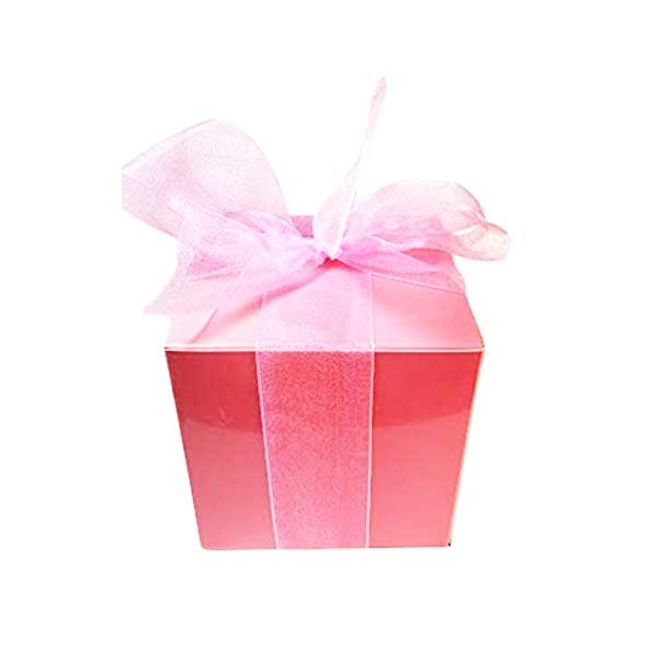 The products come nestled in pink tissue inside a glossy silver gift box and tied with a pink organza ribbon all ready for gift giving.