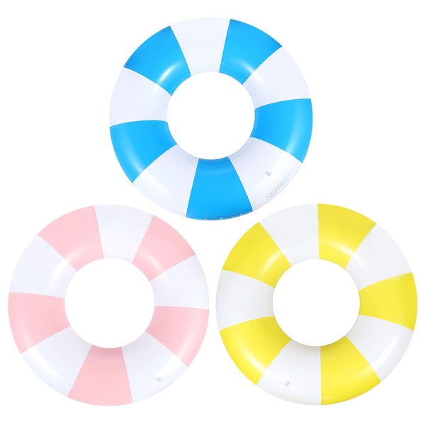 - PACKAGE INCLUDES:Package includes 3 striped pool floats in 3 vibrant colors, classic blue and white, pink and white, yellow and white stripes, perfect for the cheerful summer atmosphere, you will be the most noticed one in the pool.
