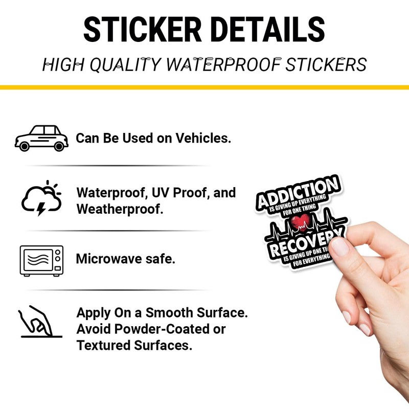 (3 Pcs) Addiction vs Recovery Sticker – Motivational Quote Sobriety Mental Health Vinyl Decal Waterproof for Notebook, Water Bottle, Laptop – Gift for Recovering Addicts, Support Groups – 3 Inch