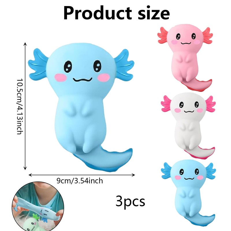 • 【Packaging content】: You will receive a set of 3 axolotl toys.The color is random. axolotl toy embodying an adorable design, fit comfortably in your hand, making it easy to exercise your grip strength, turning stress management into an effortless and enjoyable routine