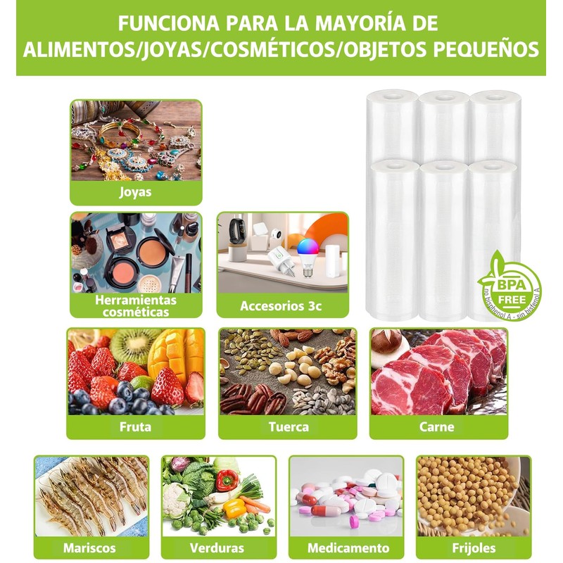 - 【Adecuado para todas las selladora al alto vacio】Esta vacuum sealer bags es compatible con todas las maquina selladora de bolsas "clip-on", como: Food Saver, Seal a Meal, Nesco, Weston, Cabela's, Ziploc, etc. Se pueden crear fácilmente bolsas de vacío de tamaño personalizado en segundos para satisfacer una variedad de necesidades de almacenamiento. Ya sea que se trate de un usuario doméstico o comercial, puede brindar una experiencia de almacenamiento de alimentos conveniente y eficiente.