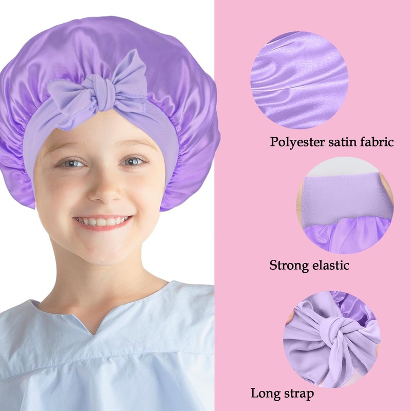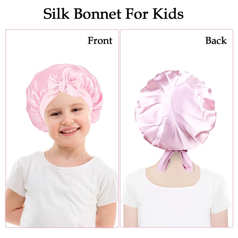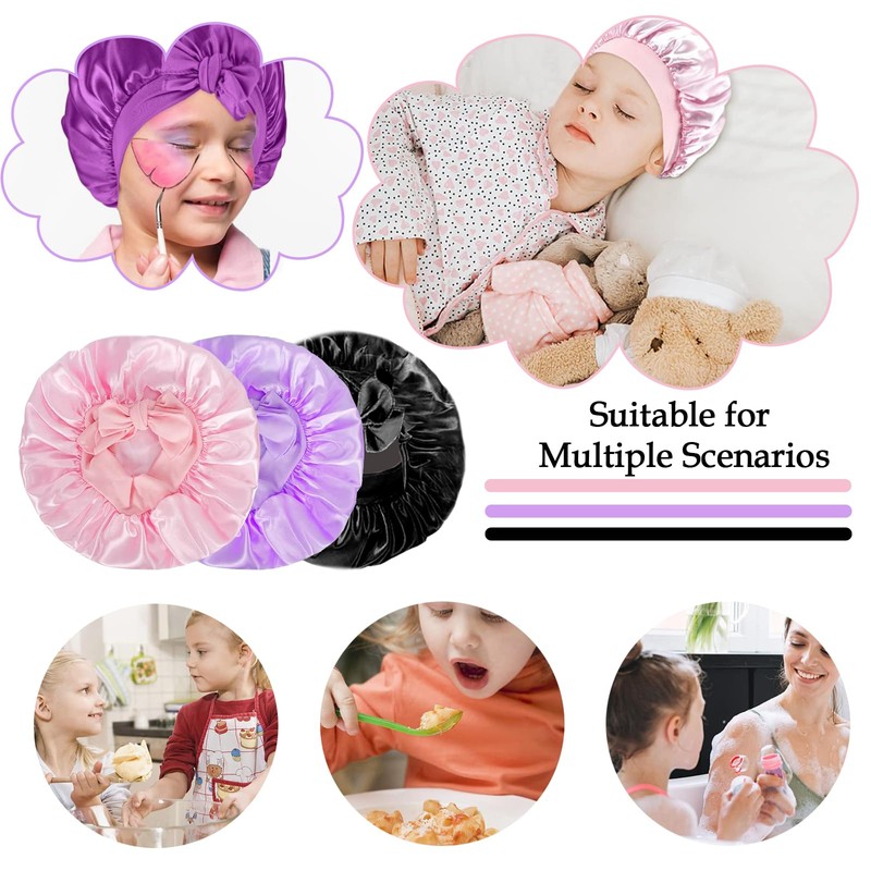 - Wide Applicaiton: The silk bonnet for sleeping kids can used as night sleep cap, or use when bathing, face cleaning or reading. It can protect hair when sleeping, also prevent your hair falling on floor. Suitable for all types of hair, such as black hair, curly hair, braids, long dreadlocks, short hair, thin hair, thick hair