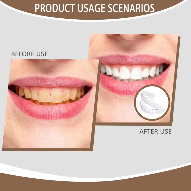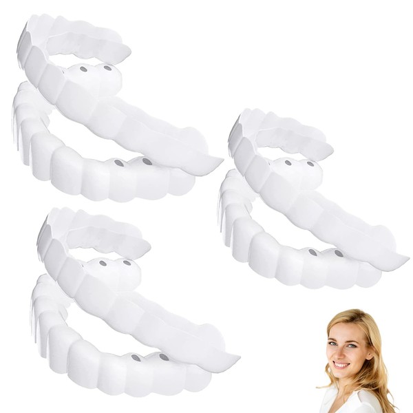 3 Pairs Clip In Veneers Teeth, Clip On Veneers Top And Bottom for Men and Women Confident Smile Practical Smile Enhancement: Our snap on veneers teeth provide an easy, non-invasive way to enhance your smile. Perfect as a false teeth set, these fake teeth blend naturally for a confident look in seconds. Custom Comfort Fit:Designed for both men and women, these teeth veneers for men and women are lightweight and comfortable. No messy adhesives—simply clip on for a secure, natural feel. Multipurpose Application: Our clip on teeth veneers uk, teeth covers are widely applicable to cover irregular, spotted, missing and incomplete teeth, allowing you to have a confident and bright smile. Reusable & Adjustable: Unlike permanent veneers, our clip on tooth veneers can be removed anytime. Trim and shape them for a perfect fit, making them ideal for daily wear or special occasions. Boost Confidence Instantly: Whether you need teeth veneers for women or men, our snap-on veneers provide a quick, affordable smile makeover