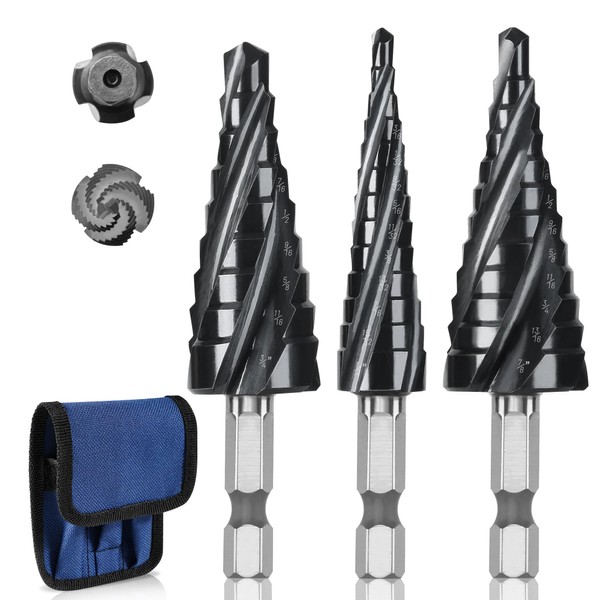 3 PCS Cobalt M35 Step Drill Bits Set 1/8" to 7/8", TiAlN Coating 4 Spiral Flute Step Bit for Stainless Steel, Metal, Aluminum, Plastic
