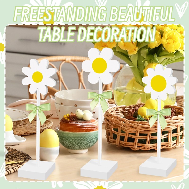 - Quality Material: The daisy table decoration set is made of wood, is very reliable and serviceable, and clear pattern printing; It is also suitable for a variety of occasions, you can use it as a decorative item, and you can also use it as a shooting prop