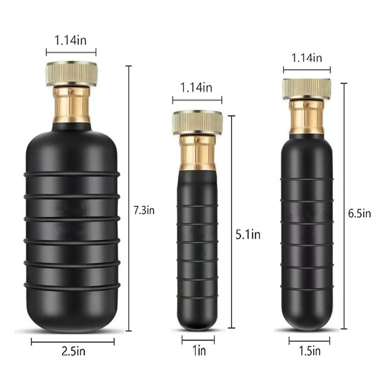 3 different sizes of drain rubber bladders for drains 1-2 inches, 1.5-3 inches and 4-6 inches in diameter, effectively tackling clogs in kitchen sinks, bathtubs, showers, main drains, and outdoor sewers