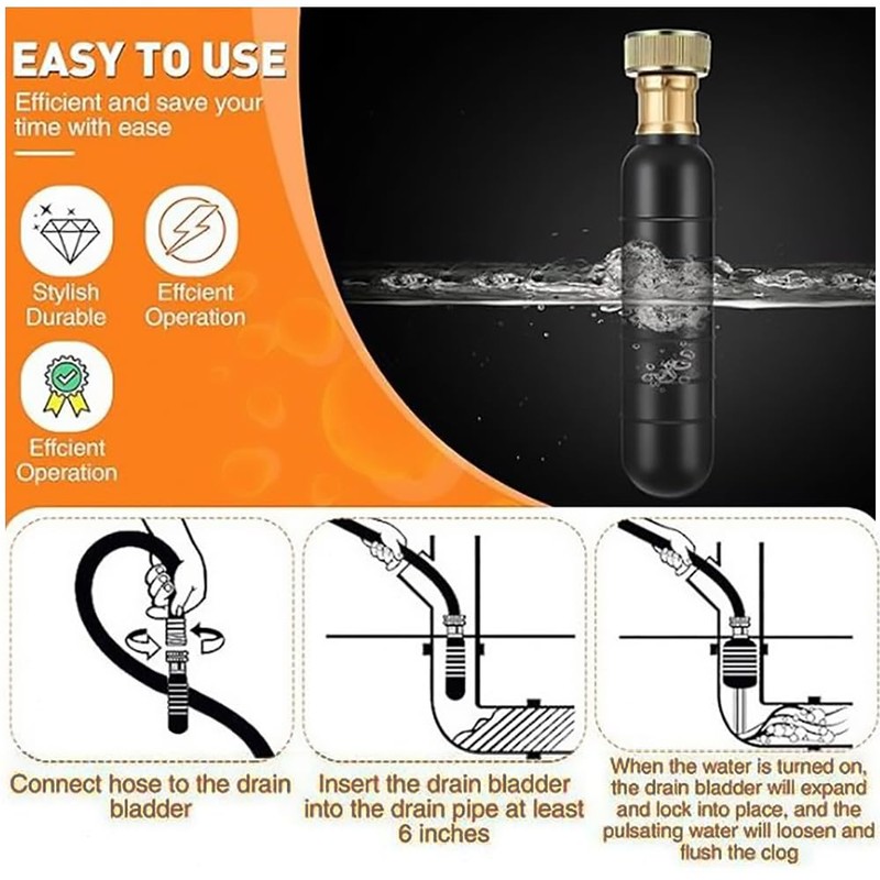 - Easy to Use: Simply insert it into the drain and turn on the water—no need for costly plumber services. It’s a safer alternative to smelly drain cleaners