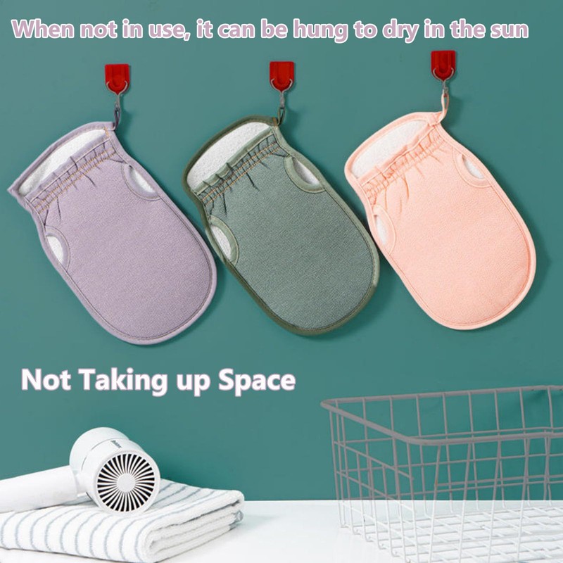 - Deep Exfoliation: The double-sided exfoliating gloves feel comfortable and safe when worn on the skin. They can deeply remove dirt, dead skin and impurities from the skin, helping to soften and rejuvenate the skin.