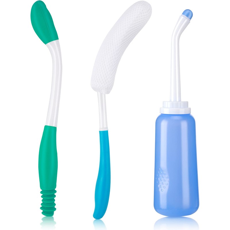 - Extended Reach Comfort Kit: you will receive 3 pieces toilet assist devices, including 1 body scrub brush, 1 portable bidet for travel and 1 butt wiper for toileting, which are practical and convenient for you to use at home or travel