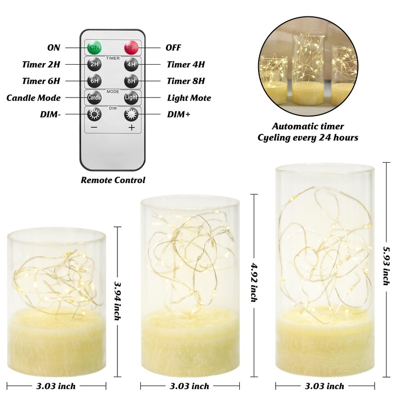 - Candles are powered by AA batteries (excluding AA batteries), and each set of candles includes 4-inch 5-inch 6-inch candles and a remote control. It is very simple and convenient to use, and you can remotely control it anywhere you want to decorate.