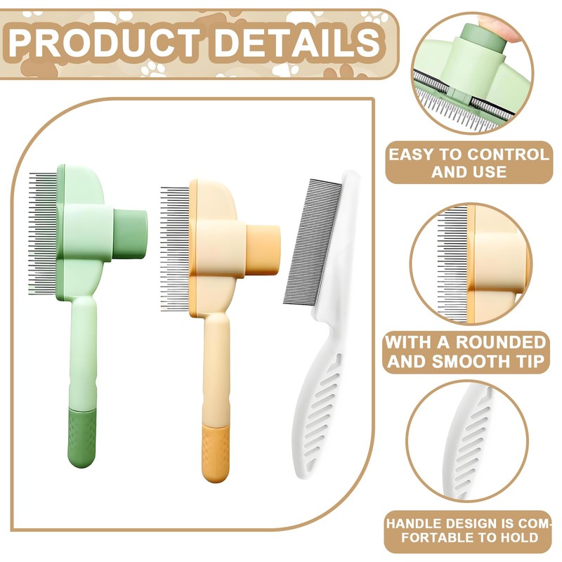 3 Pcs Flea Comb for Cats und Dog Comb Set, Can Help Pets Their fur is Suitable for Short Haired and Long Haired Dogs and Cats(Orange Green White) High Quality Materials: This is flea comb for cats Made of High quality materials, flea comb for dogs durable and strong, long service time, washable, easy clean, reusable, not easy to break, dog grooming brush easy to control and use. Dog Brushes for Grooming Gentle Combing: The cat comb a stainless steel tooth comb design, cat flea comb with a rounded and smooth tip, protects pet skin from scratches, cat brush for short haired cats providing comfortable and gentle grooming and massage for your pets. Flea Comb for Kittens Packaging Content: 3 Pcs pet comb (Orange, green, white)The pet hair remover massage brush is suitable for short-haired and long-haired dogs and cats. dog flea comb The practical pet grooming helper is a gift for. Easy To Use: The brush has a button to easily release pet hair from the grooming brush for cat grooming comb easy cleaning. dog grooming comb The long handle design is comfortable to hold, non slip, lightweight, compact size, easy to store and carry. Comfortable and Safe : The rounded pin ends of this flea brush for dogs are practical. This cat comb for long haired cats und cat comb for short haired cats comb grooms and massages for a healthy coat, preventing snagging and pet injuries and is suitable for dogs and cats of all sizes and breeds.