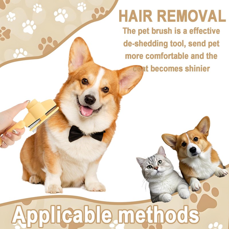 • Easy To Use: The brush has a button to easily release pet hair from the grooming brush for cat grooming comb easy cleaning. dog grooming comb The long handle design is comfortable to hold, non slip, lightweight, compact size, easy to store and carry.