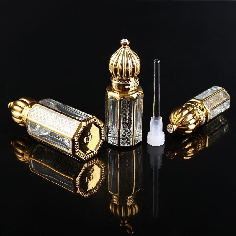 3 Pcs Glass Dropper Bottles Refillable Mini Essential Oil Dropping Bottle Travel Cosmetic Perfume Sample Containers with Gold Cap