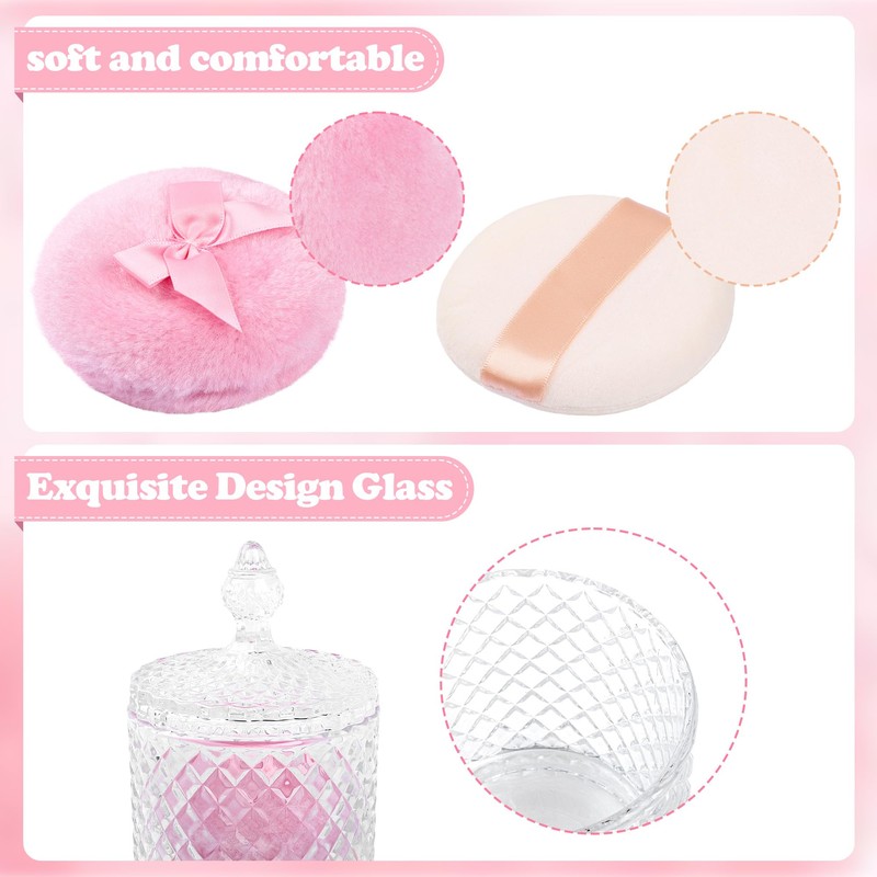 - Exquisite Design: powder container with puff: This dusting powder container with puff features a crystal glass powder jar with puff, adding elegance to your space. The set includes two soft, skin-friendly plush dusting powder puffs, perfectly paired with the glass powder container—whether you need a dusting powder container, powder container, or powder jar with puff.