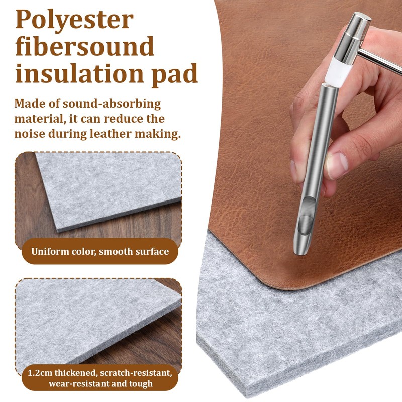 - Noise Reduction: The gray sound-absorbing pad (300mm × 200mm × 12mm) is constructed from high-quality material to significantly reduce the noise generated during leather crafting. Its durability ensures that it remains intact and effectively creates a quieter working environment.