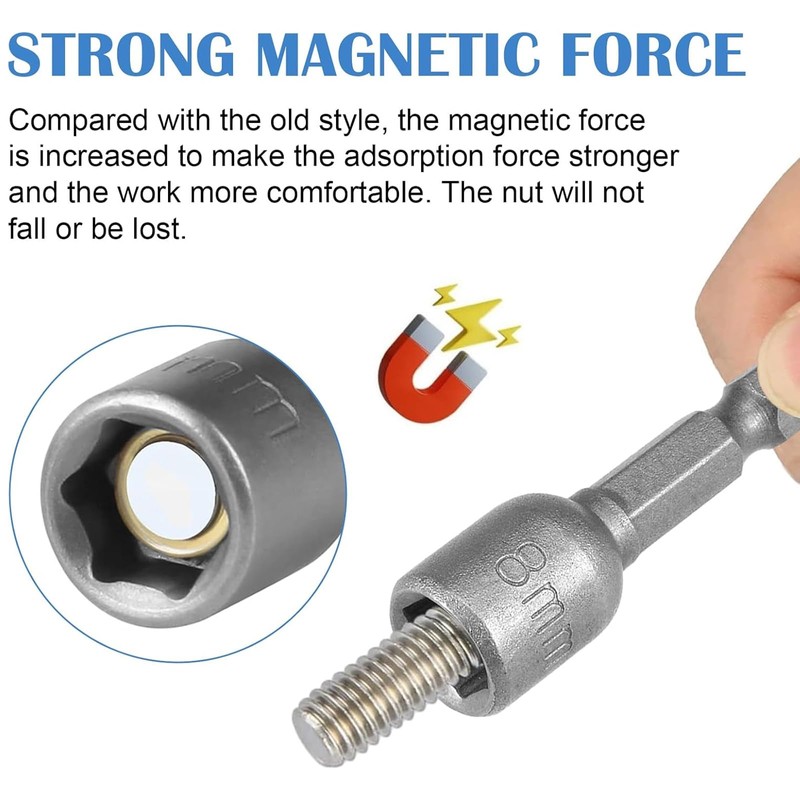 - 1/4" HEX SHANK- Use our nut removal tool designed specifically for impact drivers or 1/4 inch ratchets to easily handle stubborn bolts. Convenient magnets ensure that no nuts fall off during the disassembly process