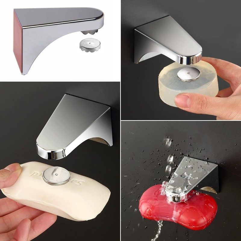 - 【Easy to Install】No need to drill holes or screws, just peel off the adhesive sheet to stick it firmly on a smooth surface, press the stainless steel cover into the soap, align the magnetic suction cup, and suck the soap.