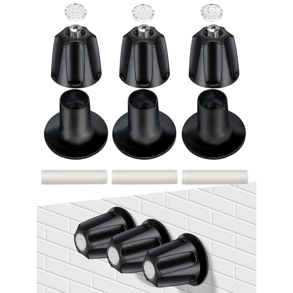 3 PCS Metal Shower Knob Replacement, Tub Faucet Handle with Hot/Cold/Diverter/Flange Base, Bathtub Knob Compatible with Price Pfister Verve for Remodeling Trim (Black)