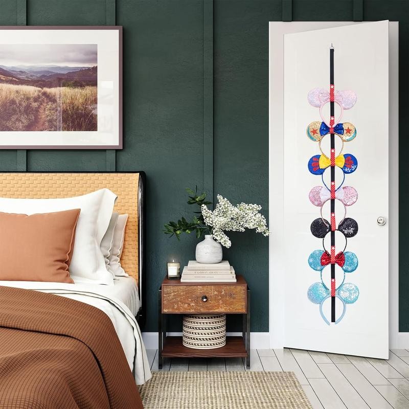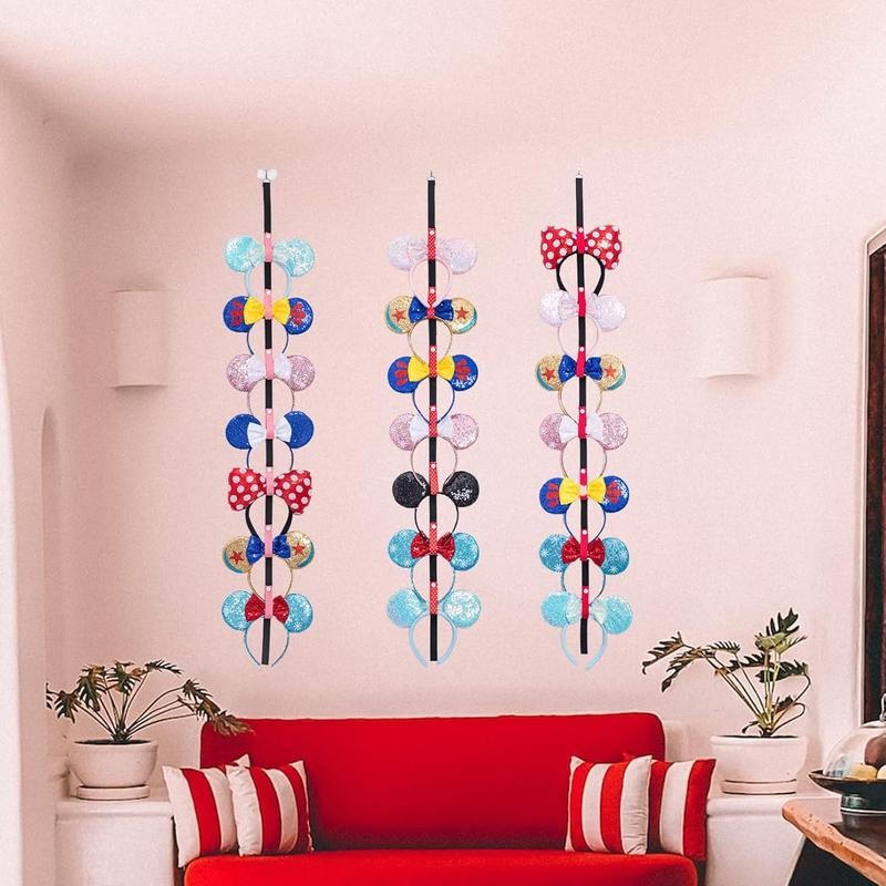 3 Pcs Mouse Ears Headband Holder Hanging Headband Organizer Bow Headpiece Hair Accessories Vertical Headband Holder Wall Display Decor - Colour: Green/Purple/Rose Red with White Polka Dots