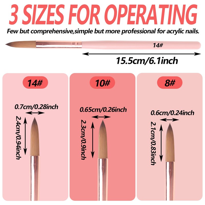 - Wide Range of Uses: These brushes are very suitable for manicurists, salons and beginners. This acrylic nail brush is very suitable for gel, acrylic acid and other nail applications. This acrylic nail brush is the good gift for nail experts and nail learners.