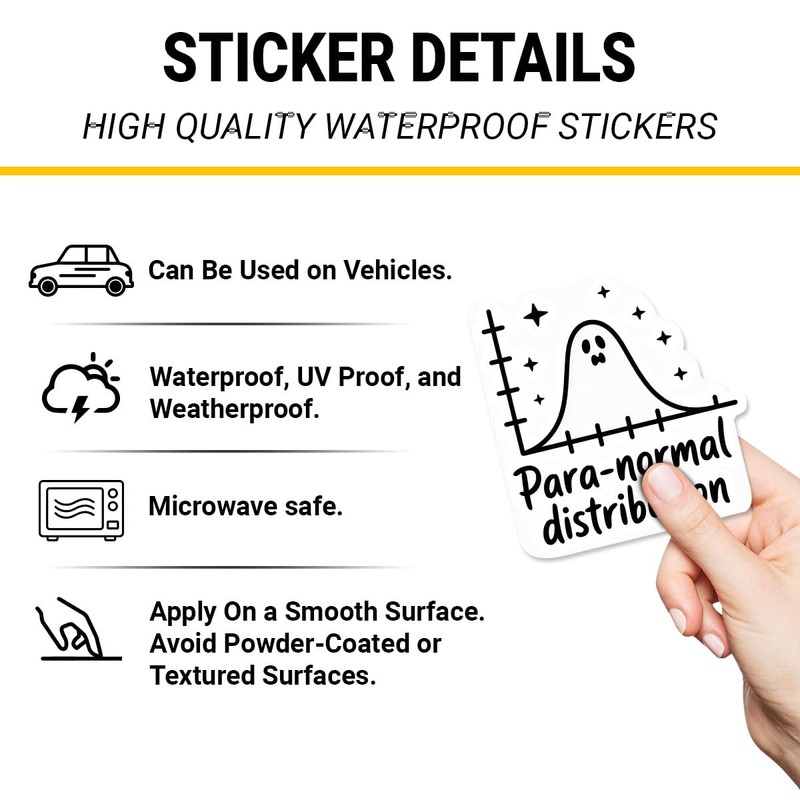 - Para-normal Distribution Sticker – Funny Math Science Statistics Ghost Graph Quote Vinyl Decal Waterproof for Laptop, Water Bottle, Notebook, Tumbler, Car – Gift for Students, Data Scientists, Nerds – 3 Inch. Search us with: para-normal distribution; para-normal distribution sticker; paranormal distribution sticker; statistics pun sticker; math joke sticker; funny ghost graph sticker; statistics humor decal; probability curve sticker; standard distribution joke; math nerd sticker