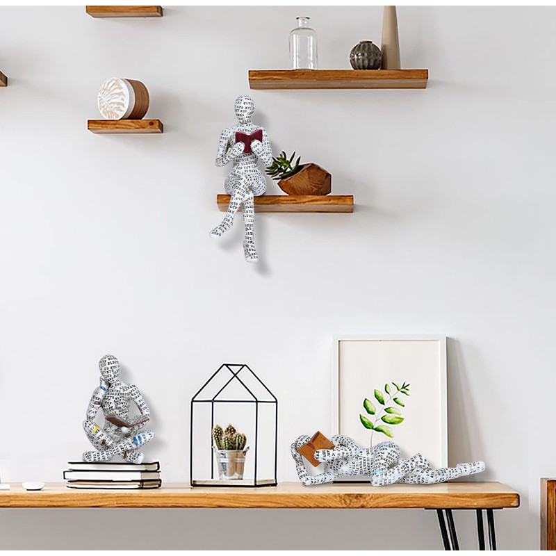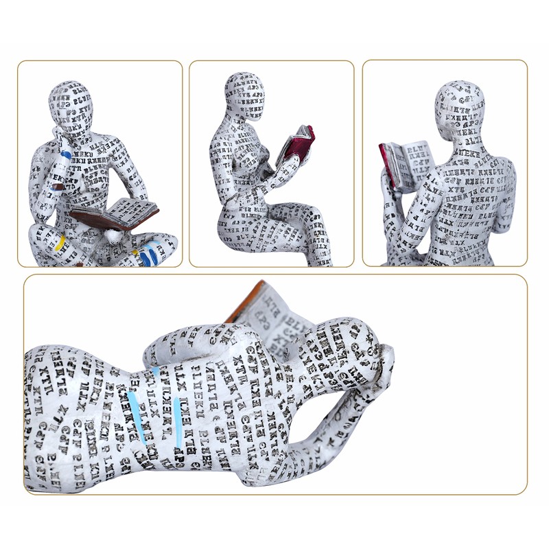 - [ART DECORATION] These reading women figurines will be a special decoration for your office, living room, coffee table, bookshelf, and bedroom. Our lovely reading women statues are ideal to be placed on either a tabletop or shelf for a very elegant appearance. The shapes of these statues are a woman who is immersed in her reading of a book. The difference is that their bodies are covered with letters, which more effectively demonstrates the attractiveness and power of women.