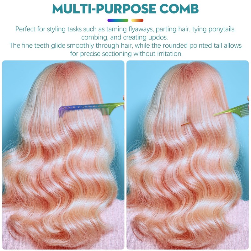 • This set includes 3 rainbow-colored hairdressing combs: one wide tooth comb, one fine tooth comb, and one rat tail comb. The combination of comb types offers versatile styling options to create a variety of hairstyles.