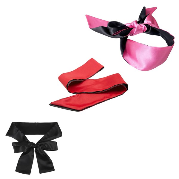 3 Pcs Silk Satin Blindfold Eye Mask Set, Soft Satin Sleep Masks and Eye Covers for Sleeping or Games, Lightweight Blindfolds for Eye Rest, Relaxation, Valentine Gift, 145cm Black Red Rose Red