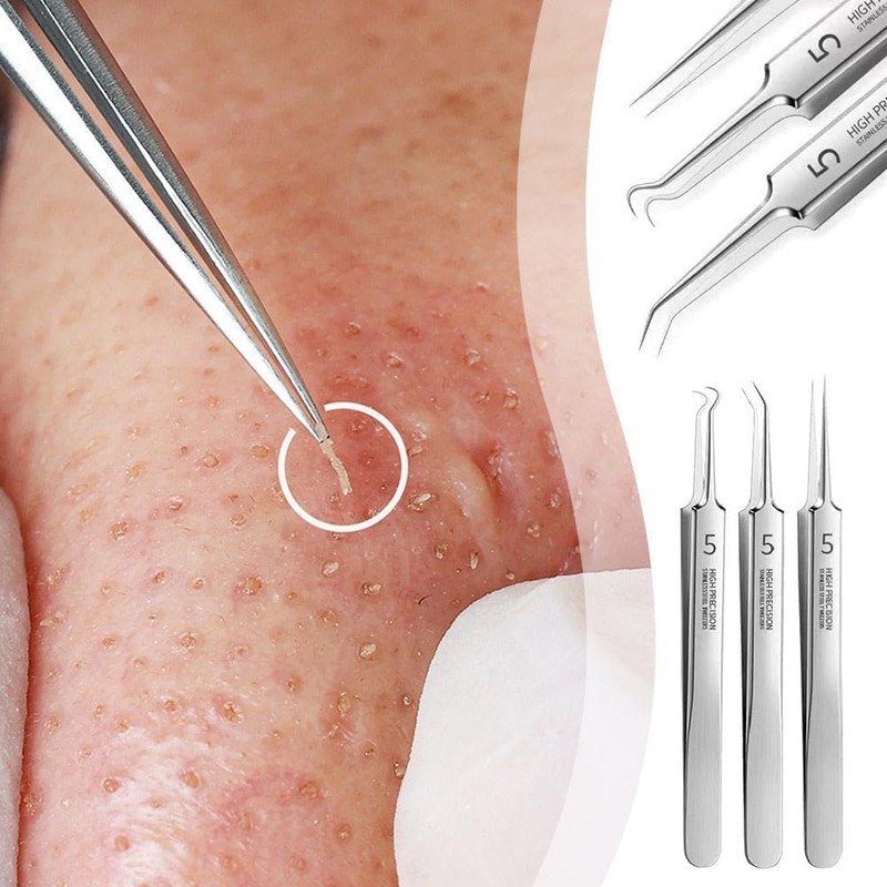 - 🛠️COMPLETE KIT: Includes three specialized tools for comprehensive skincare - curved extractor, angled tweezer, and flat-tipped remover